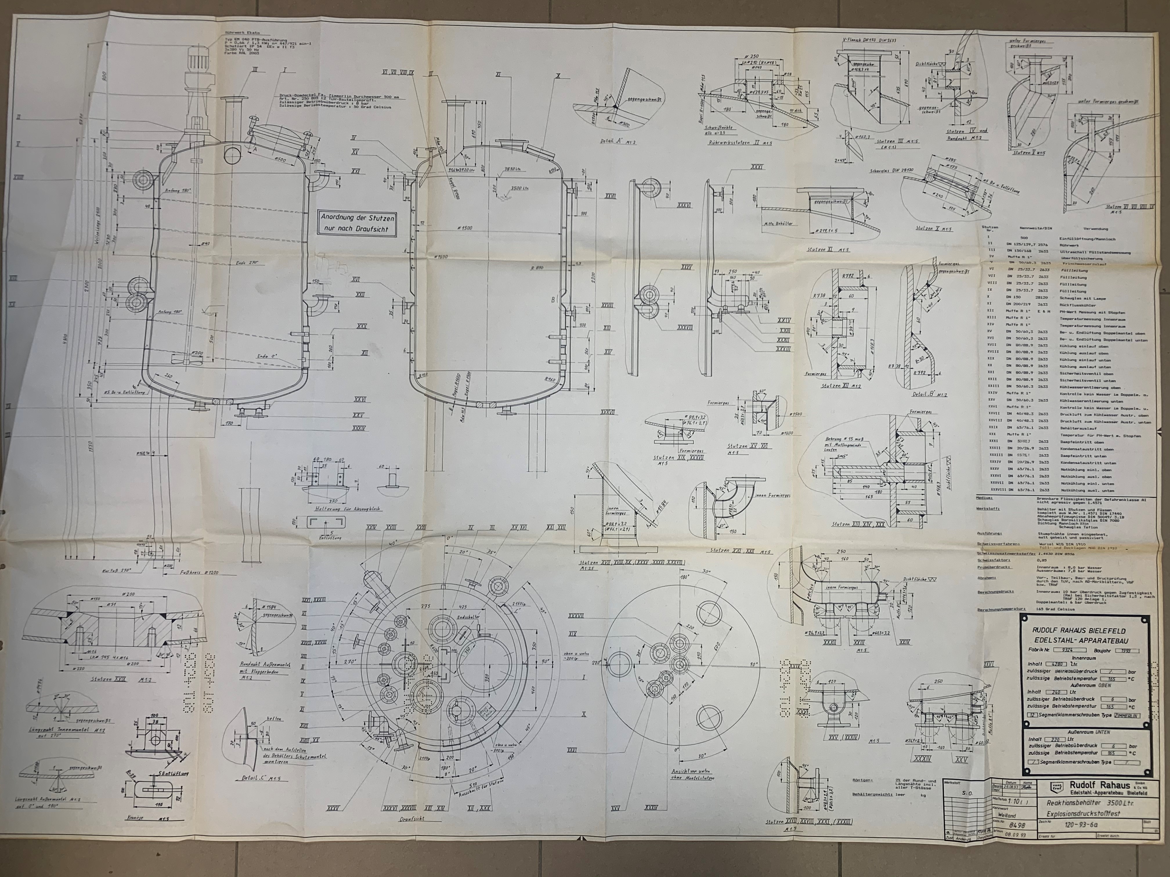 Container 4.280 liters made of V4A temperature-controllable, isolated consists of the material 1.4571(AISI316) V4A. The volume is approx. 4,280.00 litres. The diameter inside includes 1,500 mm. Container 4.280 liters made of V4A temperature-controllable, isolated was last used in the following area: Chemistry. Delivery can take place worldwide.
