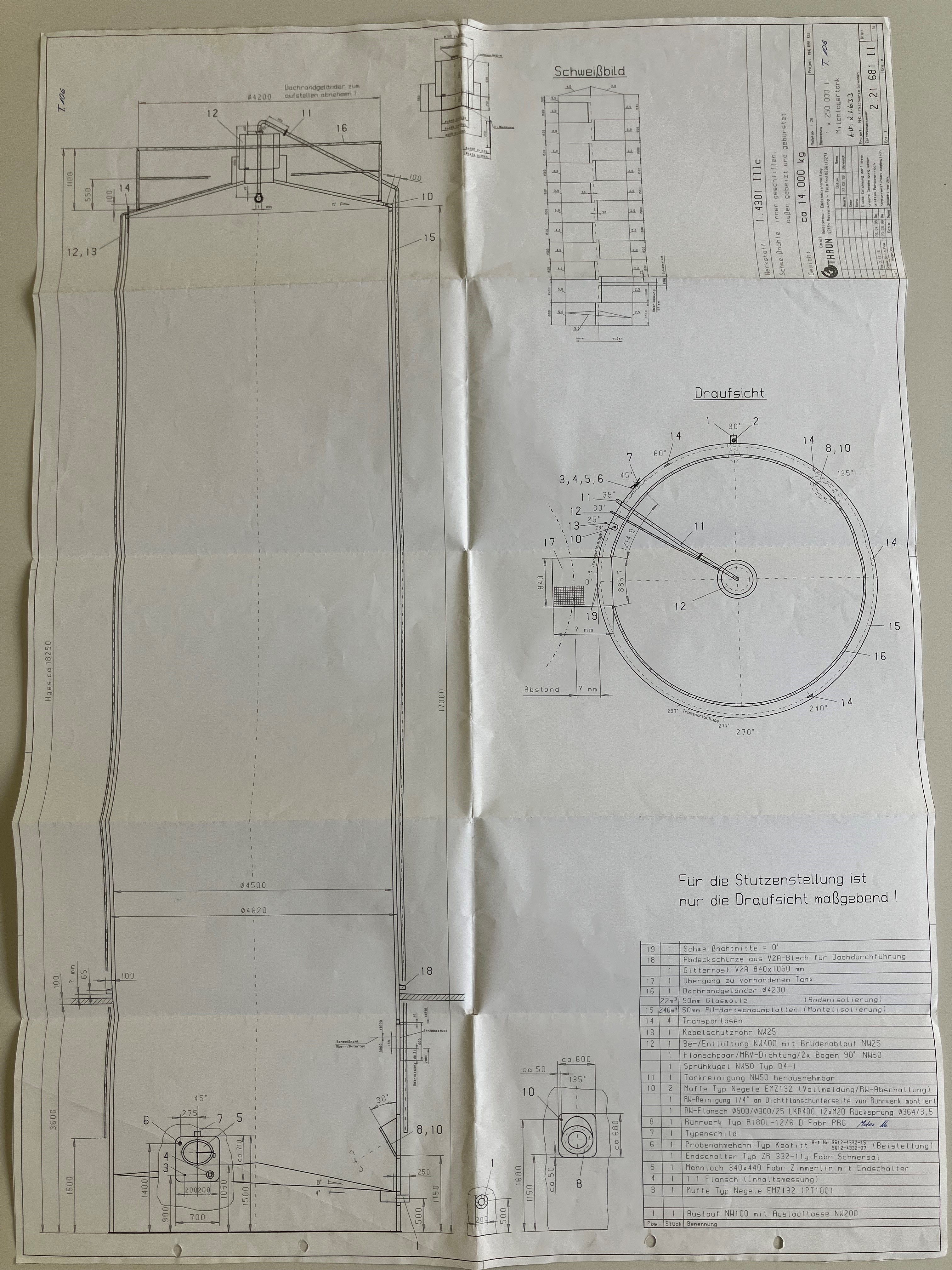 Container 250.000 liters made of V2A isolated, used - Preis auf Anfrage - consists of the material 1.4301(AISI304) V2A. The volume is approx. 250,000.00 litres. The diameter inside includes 4,500 mm. Container 250.000 liters made of V2A isolated, used - Preis auf Anfrage - was last used in the following area: Foodstuffs. Delivery can take place worldwide.