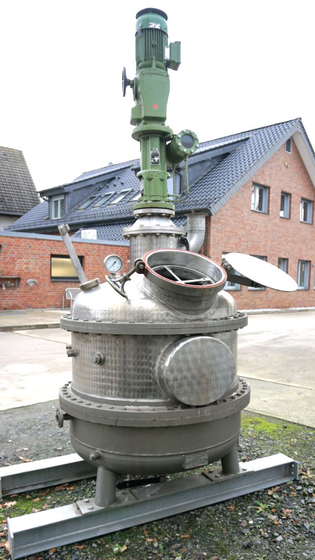 Container 500 liters made of V2A temperature-controllable, used consists of the material 1.4541(AISI321). The volume is approx. 500.00 litres. The diameter inside includes 1,000 mm. Container 500 liters made of V2A temperature-controllable, used was last used in the following area: Chemistry. Delivery can take place worldwide.