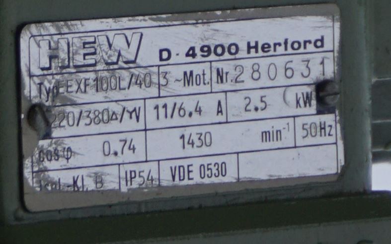 Motor ex-geschützt; die Übereinstimmung mit den aktuell geltenden ATEX-Richtlinien ist zu überprüfen