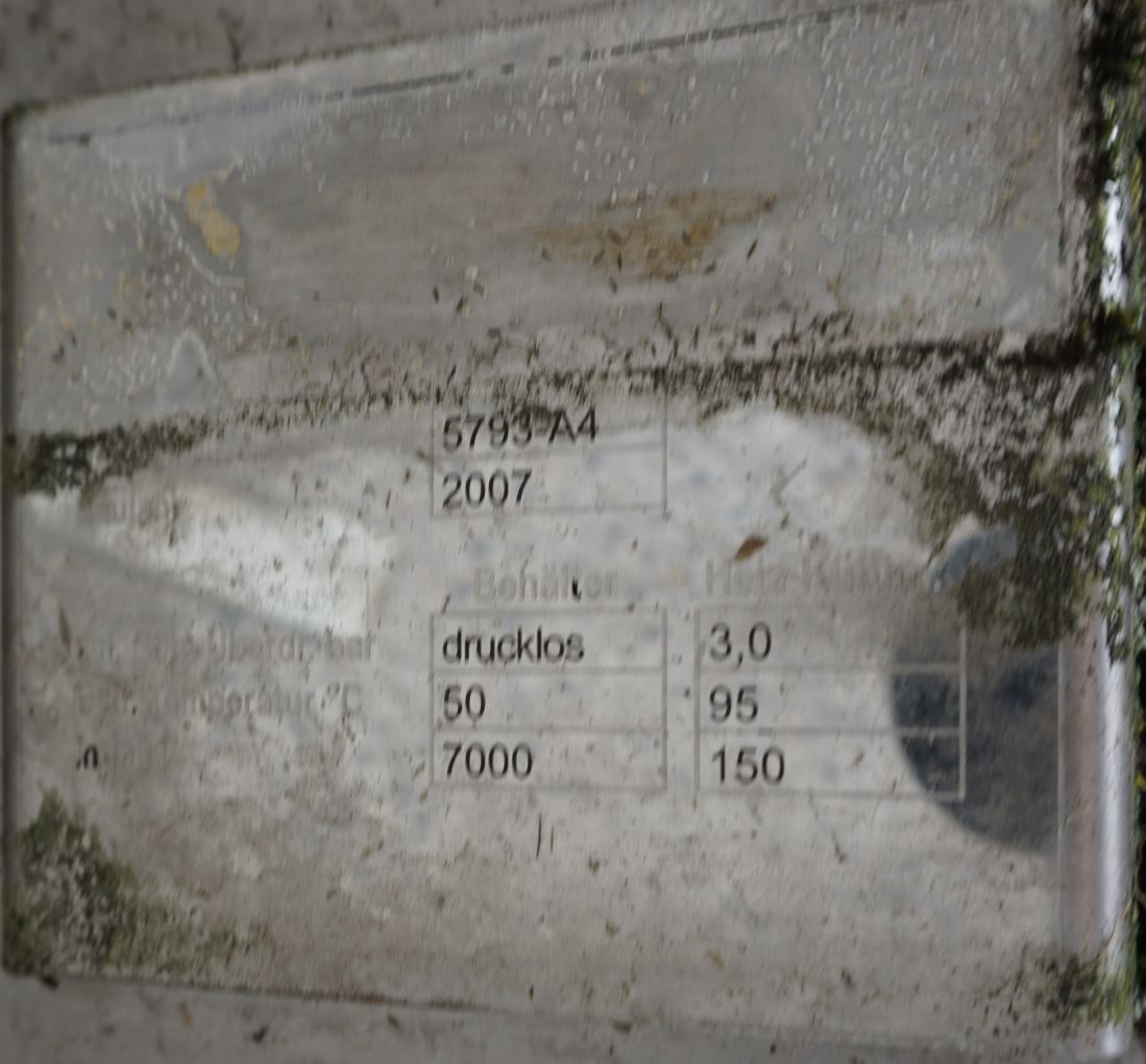 Container 7.000 liters made of V2A, temperature-controllable, isolated, used, standing
