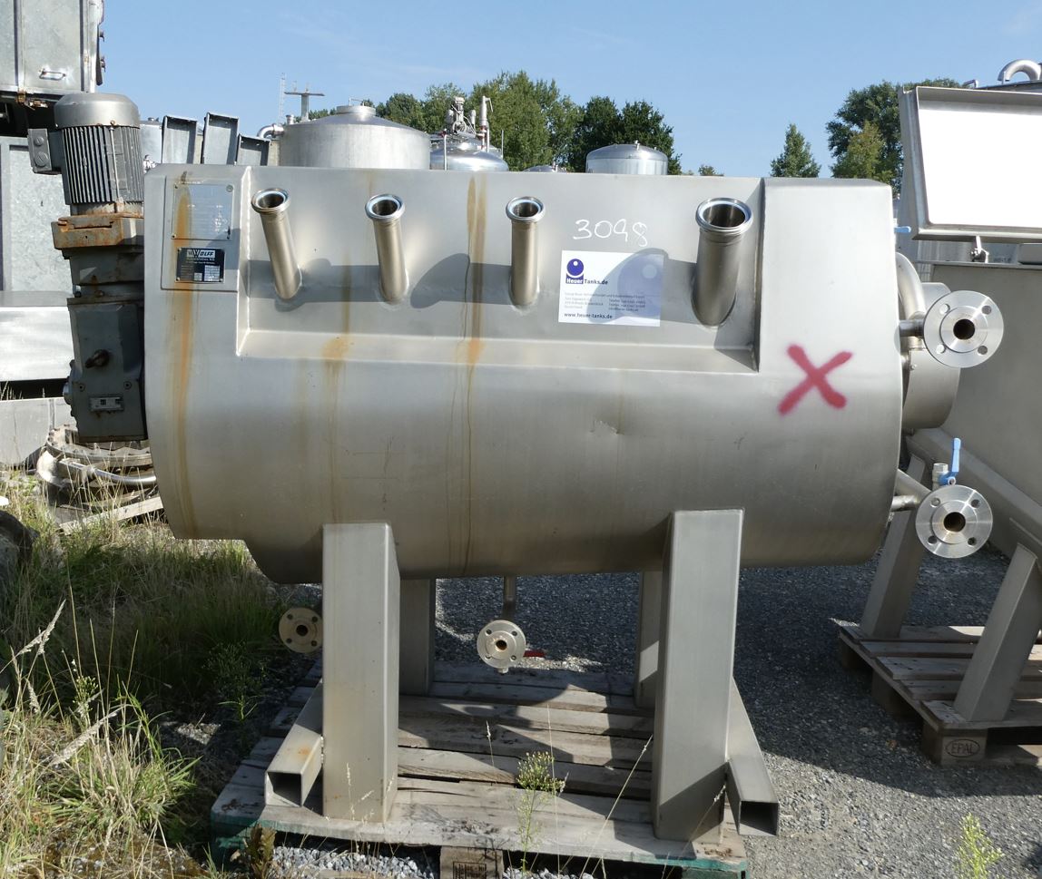 Mixing container 750 liters, temperature-controllable, isolated, used consists of the material 1.4571(AISI316) V4A. The volume is approx. 750.00 litres. Mixing container 750 liters, temperature-controllable, isolated, used has the following dimensions: length 1,540 mm, width 1,100 mm, Mixing container 750 liters, temperature-controllable, isolated, used was last used in the following area: Foodstuffs. Delivery can take place worldwide.
