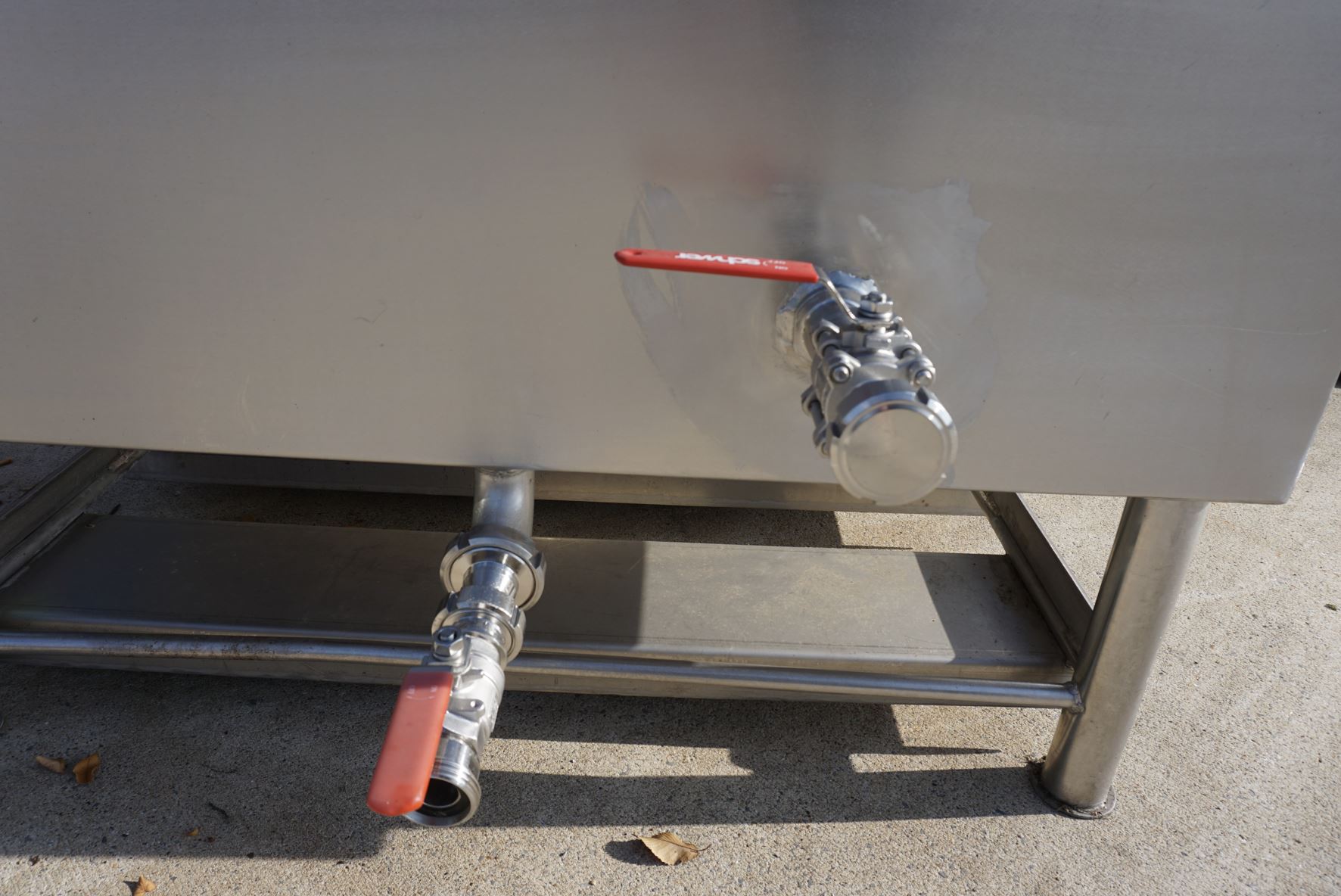 Basin 800 liters made of V2A, single-walled, used consists of the material 1.4301(AISI304) V2A. The volume is approx. 800.00 litres. Basin 800 liters made of V2A, single-walled, used has the following dimensions: length 1,200 mm, width 800 mm, Basin 800 liters made of V2A, single-walled, used was last used in the following area: Cosmetics. Delivery can take place worldwide.